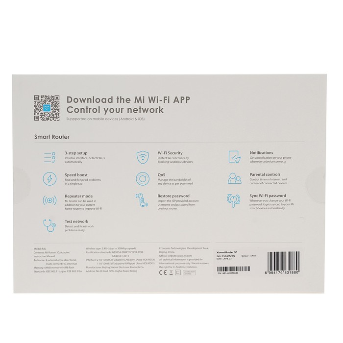Маршрутизатор/Роутер Xiaomi Mi Router 3C EU (DVB4152CN)