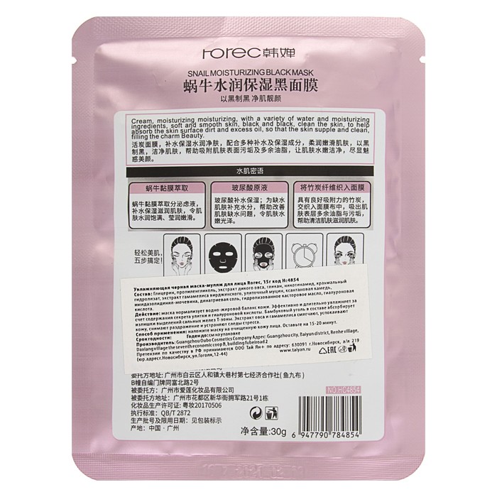 Маска-муляж для лица Rorec увлажняющая черная, 15 г