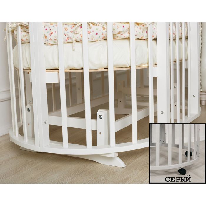 Благодаря надёжным фиксаторам качания и бесшумным подшипникам вы сможете быстро усыпить вашего кроху.
