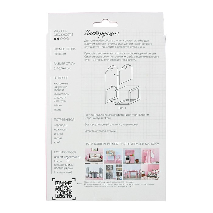 Мебель для кукол–малюток «Кухонный столик», набор для шитья, 15 × 23,2 × 2,2 см