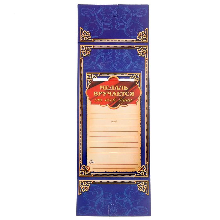 Медаль преподносится на яркой подарочной открытке с полями для имени адресата и пожеланий.