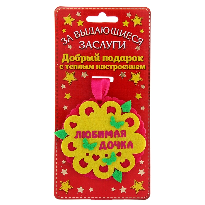 Медаль сделана из фетра и упакована на картонной подложке с поздравлением, идет в комплекте с лентой.