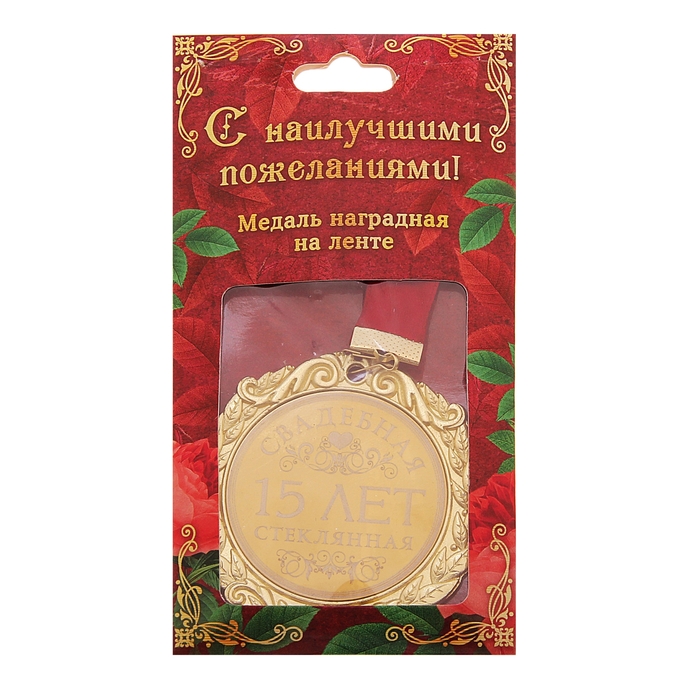 Сделать любое поздравление особенным поможет медаль с гравировкой свадебная "15 лет. Стеклянная свадьба"! Такая награда преподносится лишь самым достойным. Разработанная в эксклюзивном дизайне медаль станет отличным дополнением любого подарка и создаст торжественное настроение!