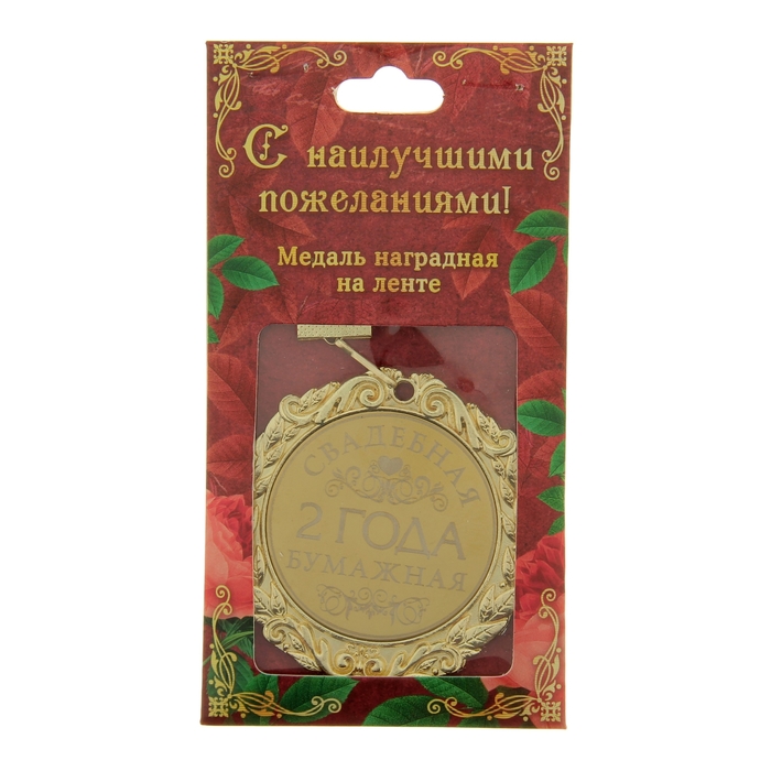 Сделать любое поздравление особенным поможет медаль с гравировкой свадебная "2 года. Бумажная свадьба"! Такая награда преподносится лишь самым достойным. Разработанная в эксклюзивном дизайне медаль станет отличным дополнением любого подарка и создаст торжественное настроение!