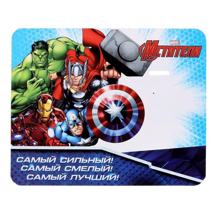 Она изготовлена из лёгкого пластика, быстро надевается и снимается. На внутренней стороне открытки есть поле для пожеланий.| Тоговая марка | MARVEL |