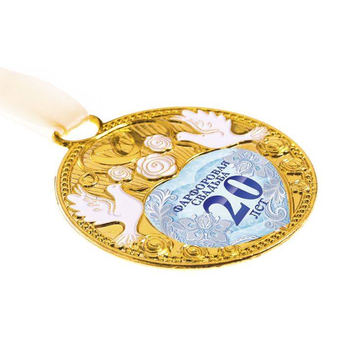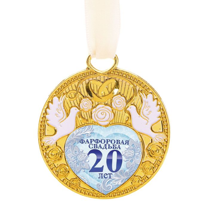 Медаль свадебная с голубями "Фарфоровая свадьба 20 лет"
