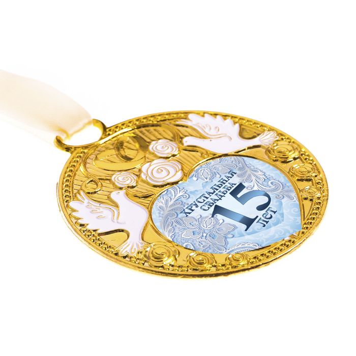 Медаль свадебная с голубями "Хрустальная свадьба 15 лет"