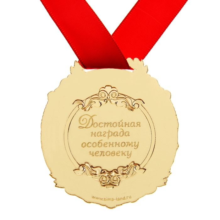 Медаль в подарочной открытке изготовлена из золотистого металла, идет в комплекте с лентой, упакована в открытку с торжественным приветствием для адресата. Удивляйте и награждайте!