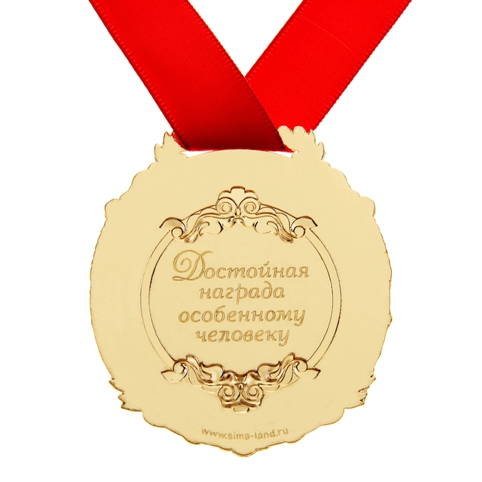 Медаль в подарочной открытке изготовлена из золотистого металла, идет в комплекте с лентой, упакована в открытку с торжественным приветствием для адресата. Удивляйте и награждайте!