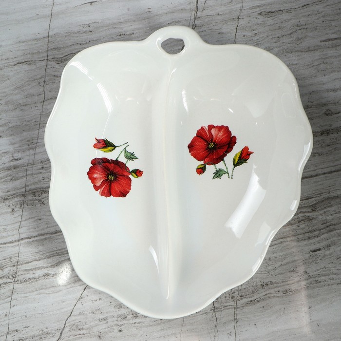 Такая менажница представляет собой блюдо, разделённое перегородками на секции. Оно предназначено для подачи нескольких продуктов одновременно. Изделие экономит место и украшает праздничный стол.