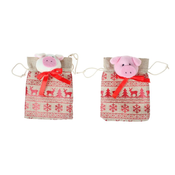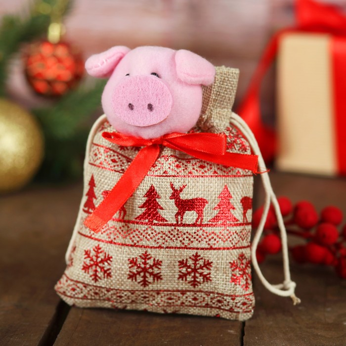 Мешок для подарков "Хрюша" с красным орнаментом, вместимость 100 г