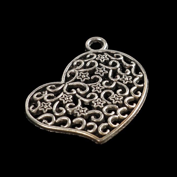 Металлическая подвеска "Сердце ажур" серебро 4,5х3,5 см 10 гр