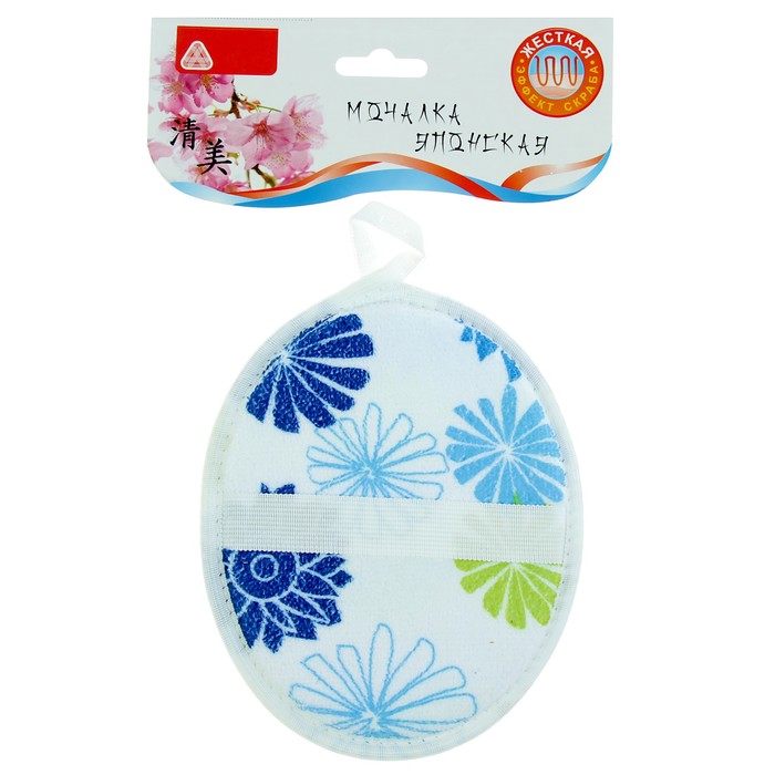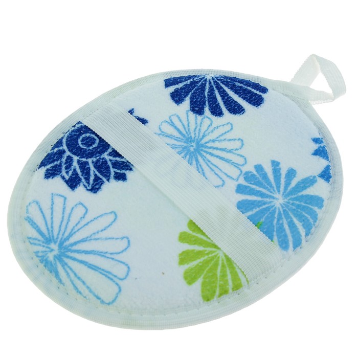 Мочалка банная "Круглая, с цветами" голубая + салатовая