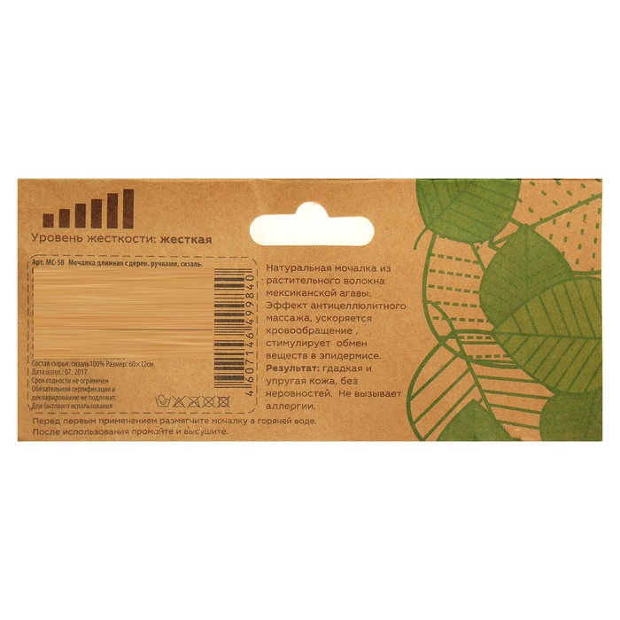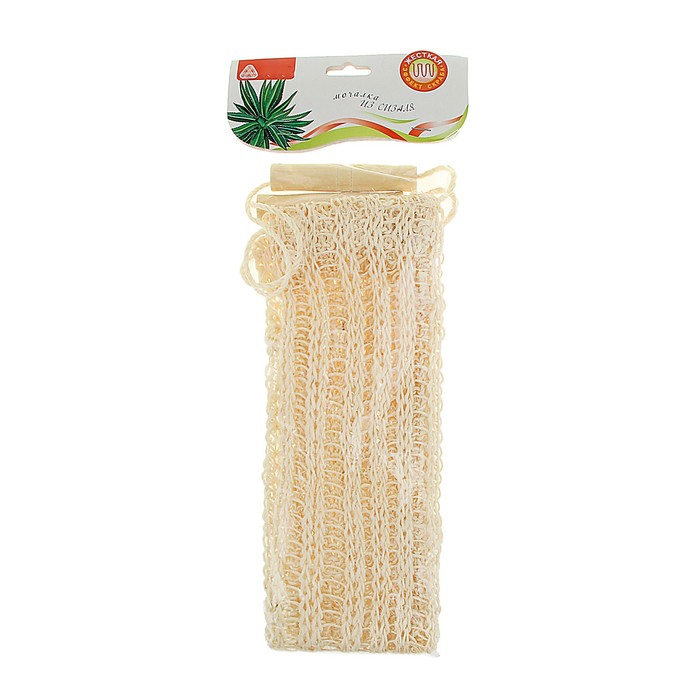 Сизаль – это грубое жёсткое волокно, получаемое из листьев растения Agava sisolana. Родина растения – Южная Америка. Мочалки из сезаля достаточно жёсткие и не подходят чувствительной коже. Такой мочалкой удобнее всего проводить сухую чистку огрубевших участков на пятках и локтях. Пользоваться ей рекомендуется не больше двух раз в неделю.