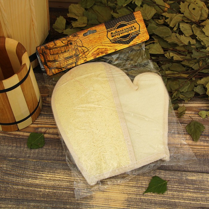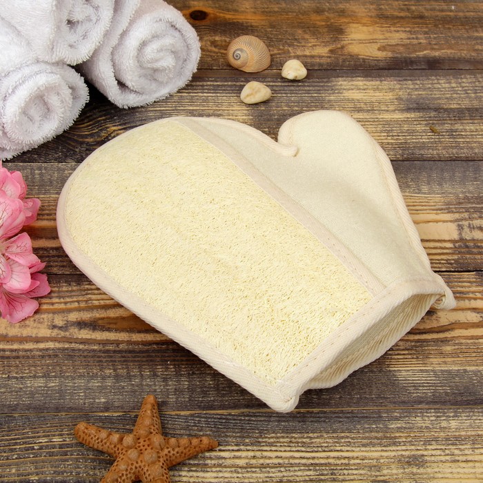 Мочалка-варежка натуральная, люффа, 22×19см