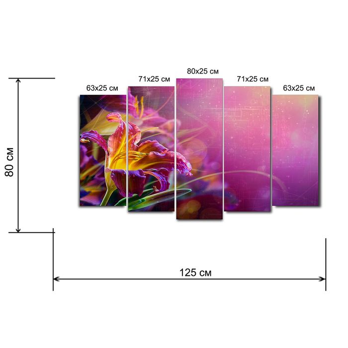 Модульная картина на подрамнике "Цветочная феерия", 125×80 см визуально расширит пространство. Это идеальное решение для небольших комнат, коридоров и холлов. Дополните убранство стильным интерьерным акцентом!