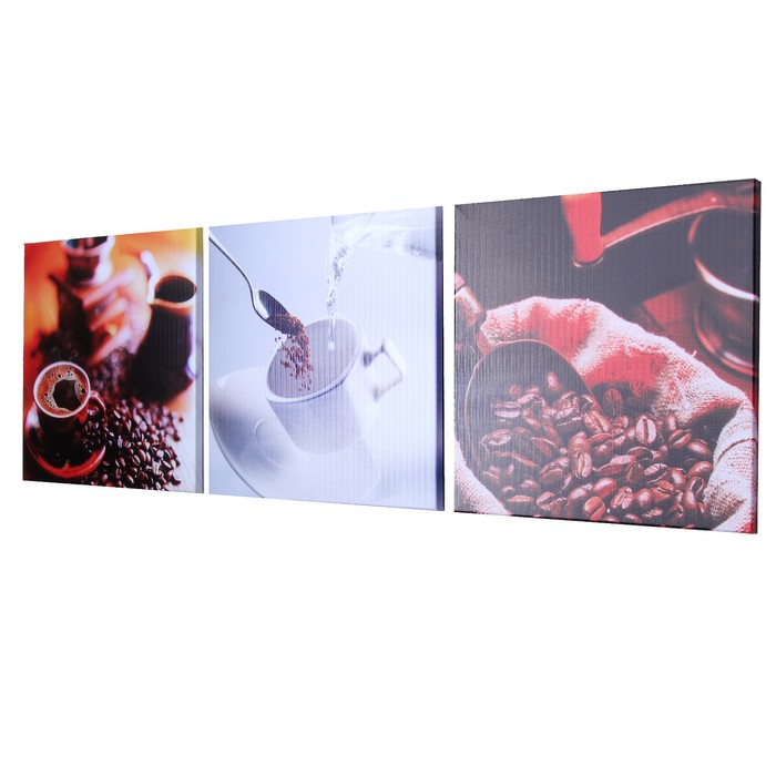 Модульная картина на подрамнике "Итальянский кофе", 3 шт. — 28×28 см, 28×84 см
