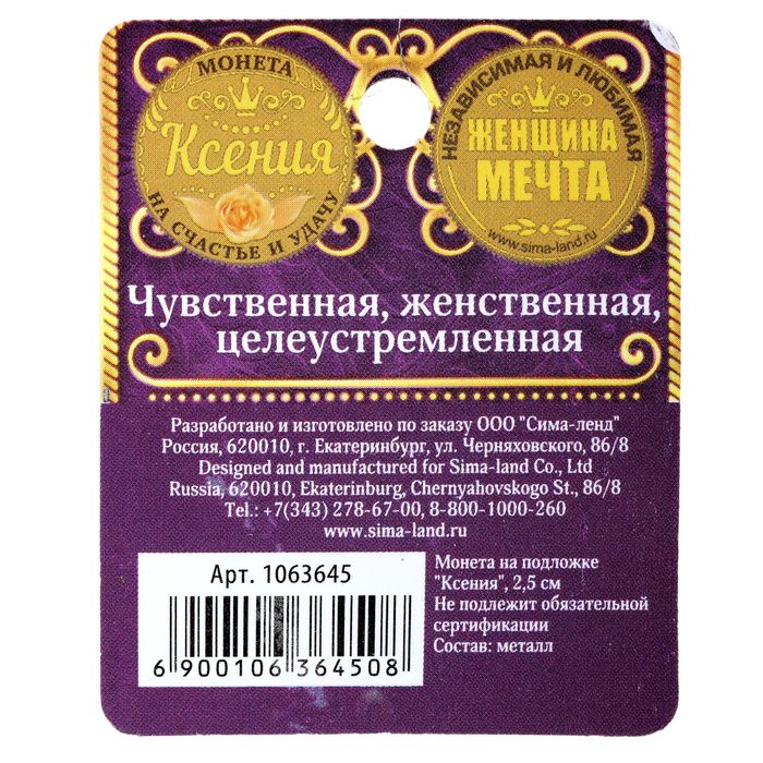 Всем известно, что самое приятное слово для любого человека — это его имя! С таким подарком, как монета именная "Ксения", Вы точно не прогадаете!