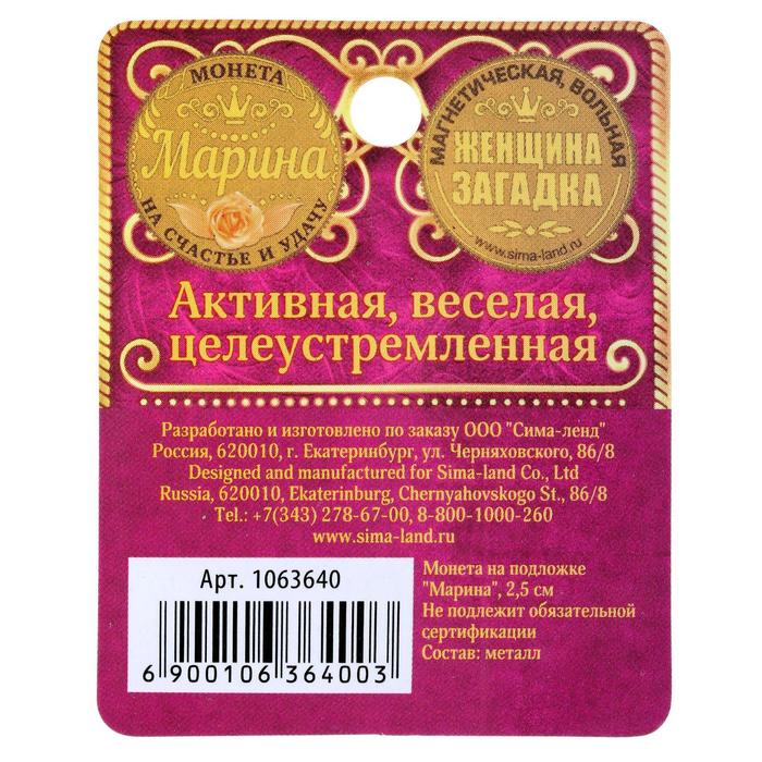 Всем известно, что самое приятное слово для любого человека — это его имя! С таким подарком, как монета именная "Марина", Вы точно не прогадаете!