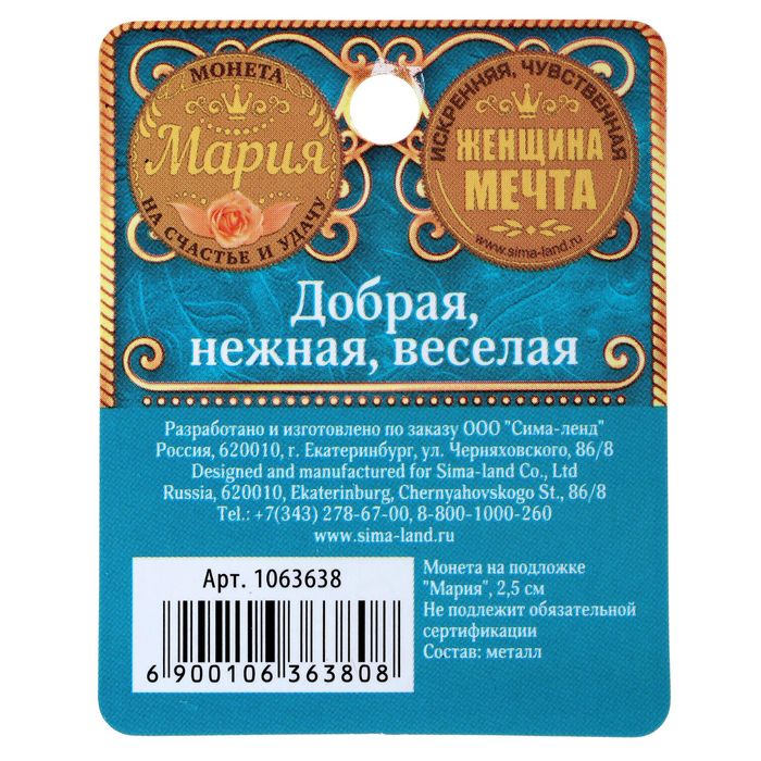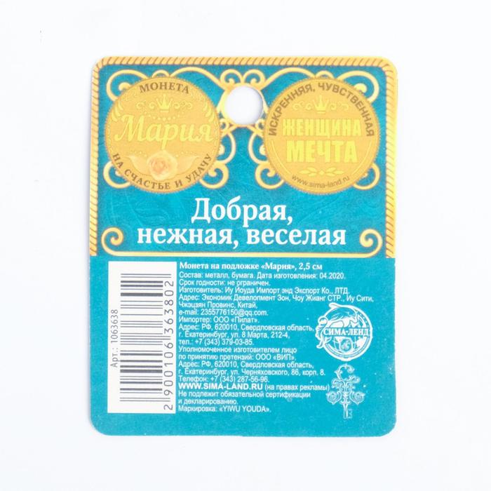 Всем известно, что самое приятное слово для любого человека — это его имя! С таким подарком, как монета именная "Мария", Вы точно не прогадаете!