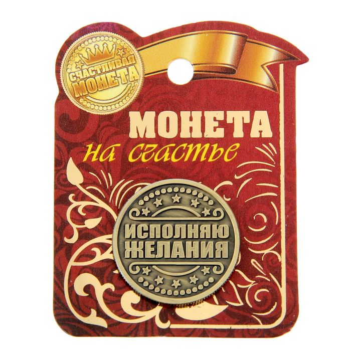 Монета " Исполняю желания" — мощный талисман на удачу! У неё есть 2 стороны: «орёл» — на исполнение самых заветных желаний, а «решка» — на удачу.