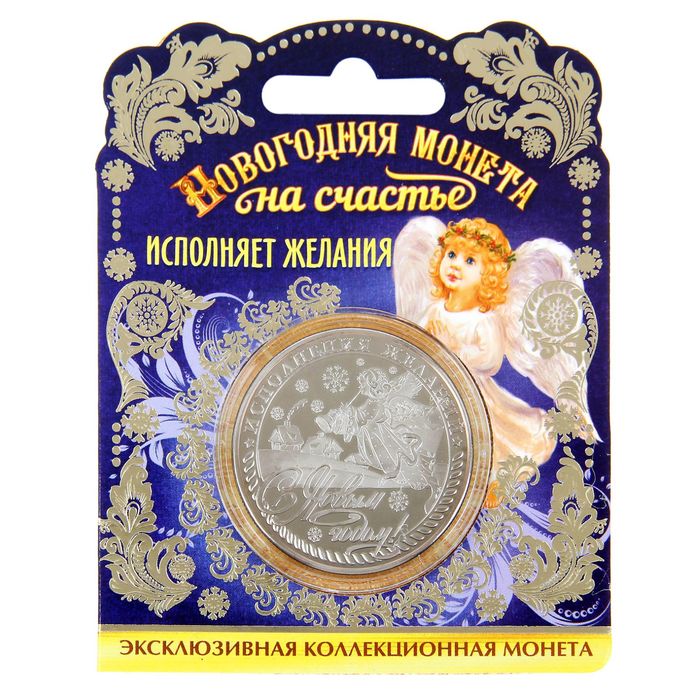 Монета новогодняя "Исполнения желаний" — талисман, с которым в Новом году обязательно повезёт! С ним вы станете самым богатым и счастливым!