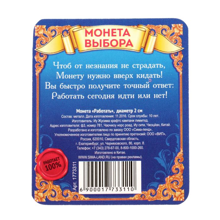 Монета "Работать"