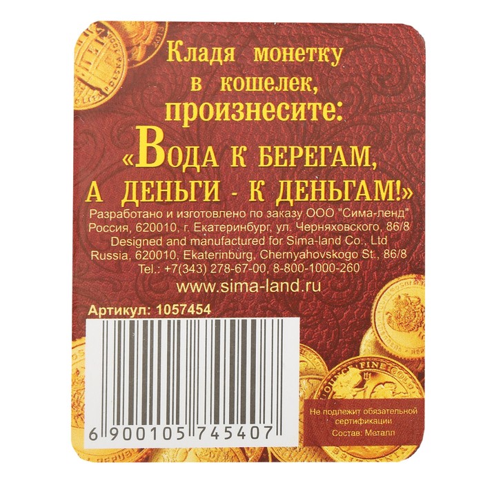 Знаете ли вы, что золотые монеты с квадратным центром способны привлекать положительную энергетику в финансовой сфере? Монета "Счастливый рубль" станет вашим маленьким талисманом в привлечении богатства и благополучия. Просто поместите её в кошелек и произнесите: «Деньги к деньгам!».