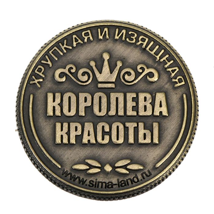 Монета изготовлена из металла и преподносится на яркой, красочной подложке с описанием атрибутов приносящих счастье.