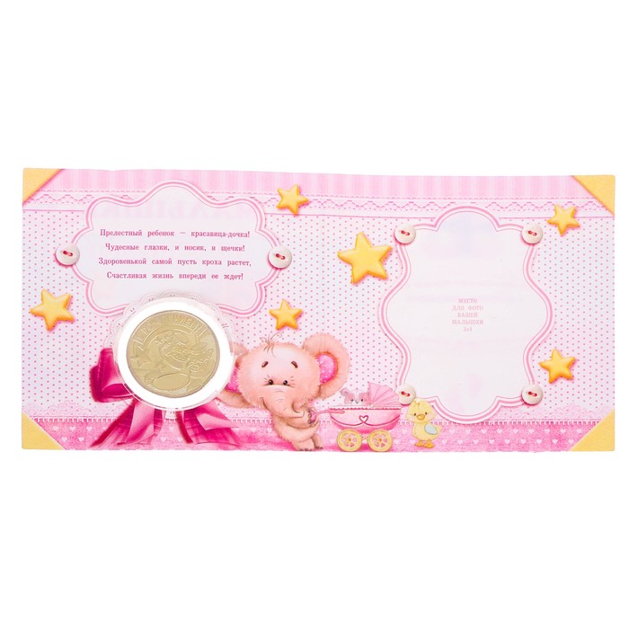 Монета в открытке "Малышке на счастье"
