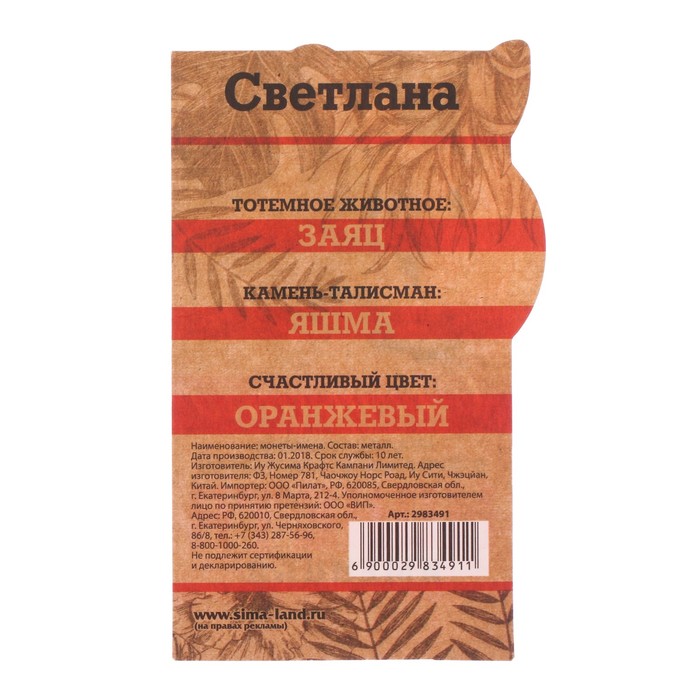 Монеты имена "Светлана"
