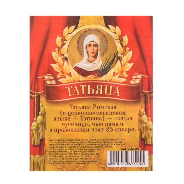 Монеты имена "Татьяна"