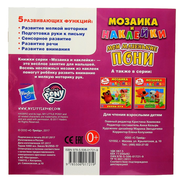 Мозаика и наклейки "Мои маленькие пони" — отличный вариант для тех родителей, которые привыкли окружать своего малыша только лучшими и качественными вещами. За такой книжкой ваш ребёнок проведёт время с пользой и удовольствием, узнает много нового и интересного.