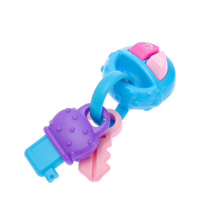 Ключики издают различные звуки: при нажатии на кнопку с изображением машины, издается звук сигнала, а при нажатии на кнопку с изображением домика, издается звук открывающейся двери.