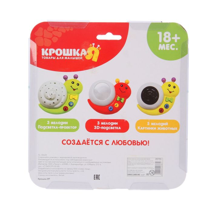Музыкальная игрушка «Улитка» с картинками животных, цвета МИКС — одна из важных деталей освещения детской или спальной комнаты. Этот небольшой предмет удивит вас своим дизайном и порадует мягким рассеянным светом. Он пригодится в семье, где есть маленькие дети: приглушённый свет не позволит испугаться ребёнку, если он проснулся ночью.