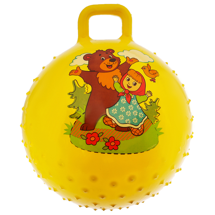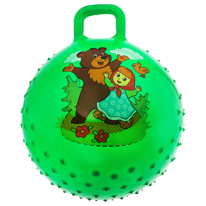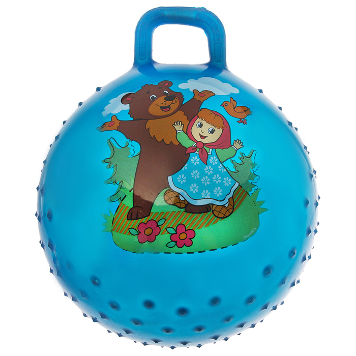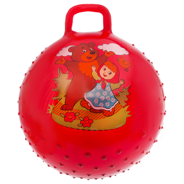 Мяч прыгун с ручкой массажный "Миша и Маша" d=55 см, 420 гр, цвета микс