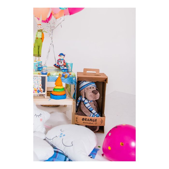 Мягкая игрушка TM Orange Toys сделана из искусственного меха и плотно набита полиэфирным волокном. Такая собака не вызывает аллергии и не линяет, его не нужно выгуливать и он отлично поддаётся дрессировке.