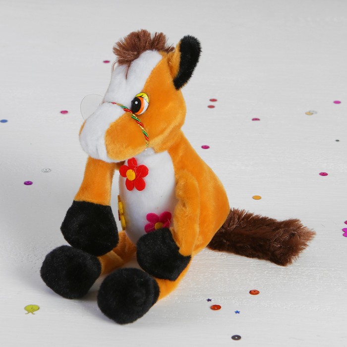 Мягкая игрушка-присоска "Лошадь" на грудке три цветка, цвета МИКС