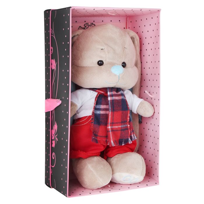 Мягкая игрушка "Зайчик Жак" в красных штанишках с шарфом, 25 см