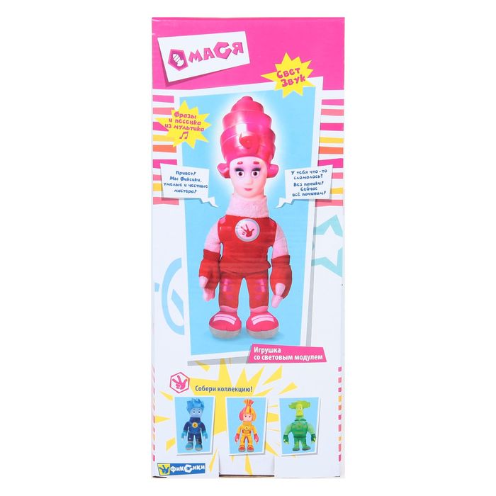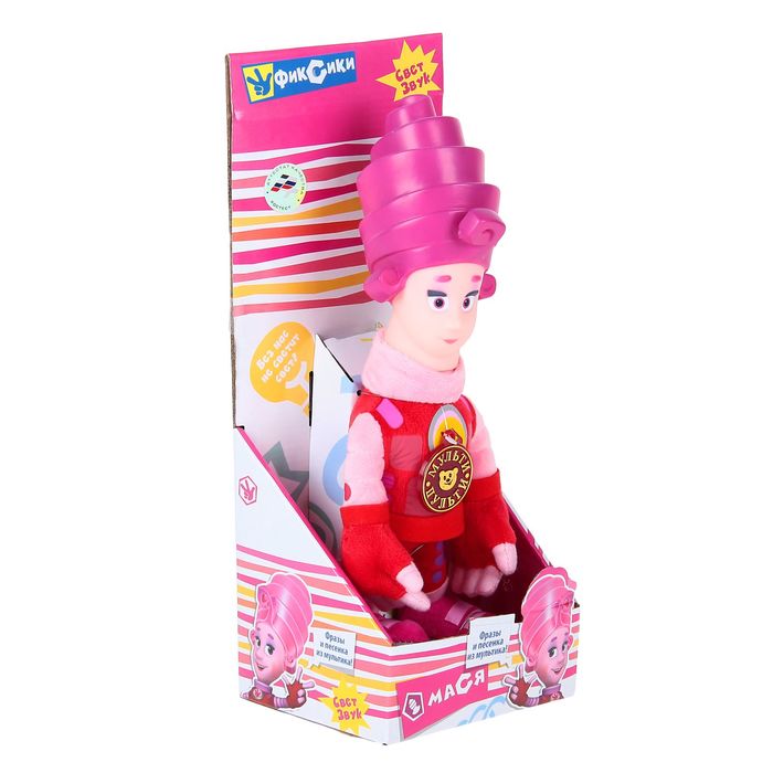 Мася сделана из высококачественного текстиля, пластика и мягкого гипоаллергенного плюша, безопасного для здоровья ребёнка.
