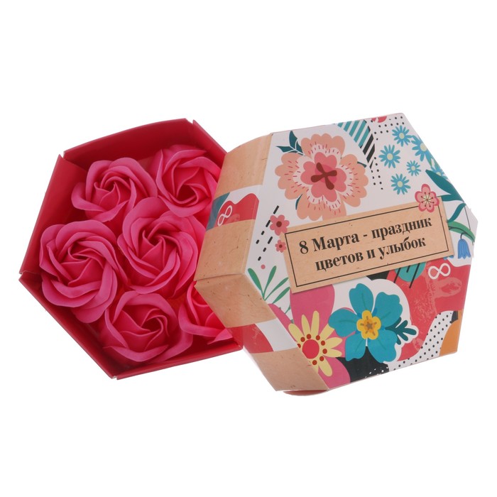 Мыльные лепестки в коробке "8 марта - праздник цветов и улыбок", 7 шт.