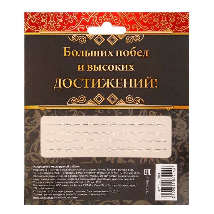 Мыло с картинкой на открытке "Настоящему мужчине!"
