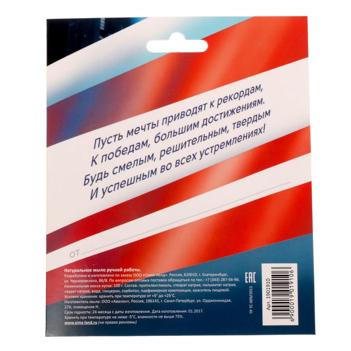 Мыло с картинкой на открытке "Самому смелому и быстрому!"