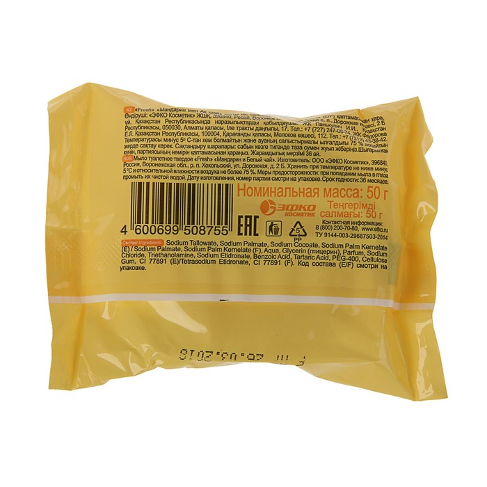 Мыло туалетное Fresh "Мандарин и белый чай", 50 г эффективно очищает кожу, не травмирует и не сушит её.
