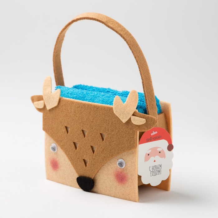 Наб.полотенец в корзинке "Олененок" 30х30 см-2 шт, 100% хл, 300гр/м2