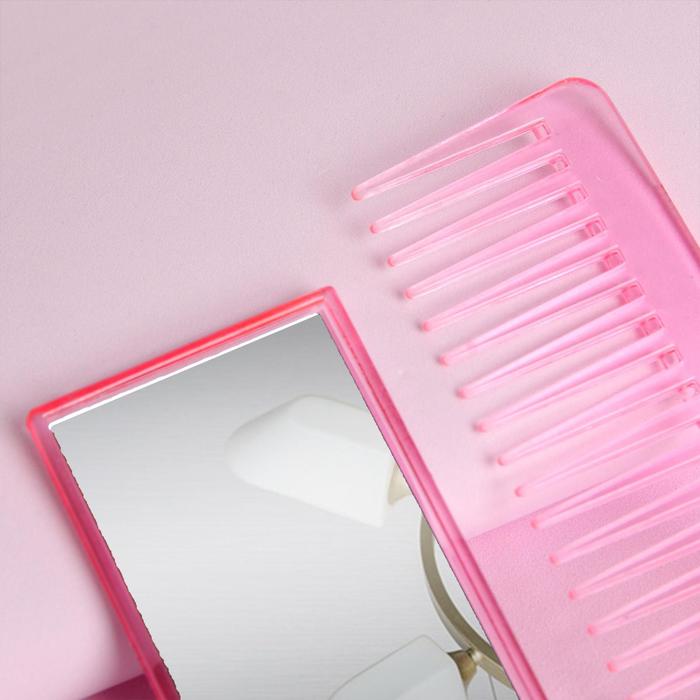 Набор 2 предмета: расчёска-гребень, зеркало,цвет розовый