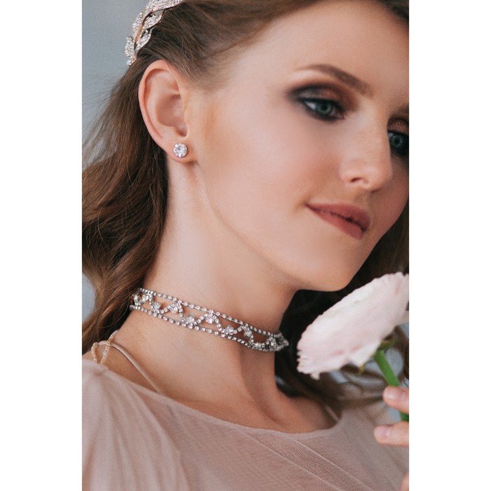 Ни один стиляга не будет выглядеть современно без искусно подобранных украшений, которые завершат его образ! Бижутерия — это современная недорогая альтернатива изделиям из золота и прочих драгоценных металлов. Набор 2 предмета: серьги, чокер "Торжество" волна, цвет белый в серебре — это то, что добавит вам шарма!