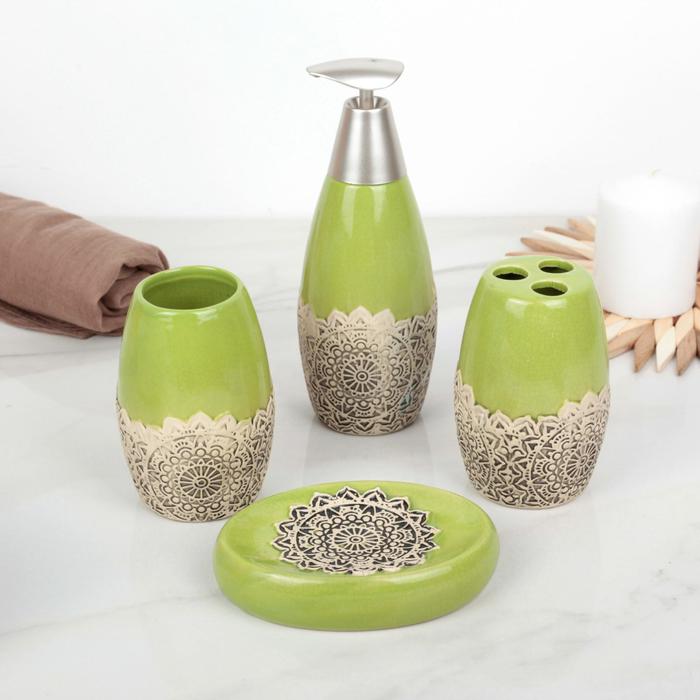 Набор аксессуаров для ванной комнаты, 4 предмета "Ажур", цвет зеленый