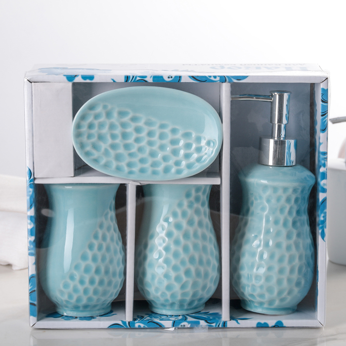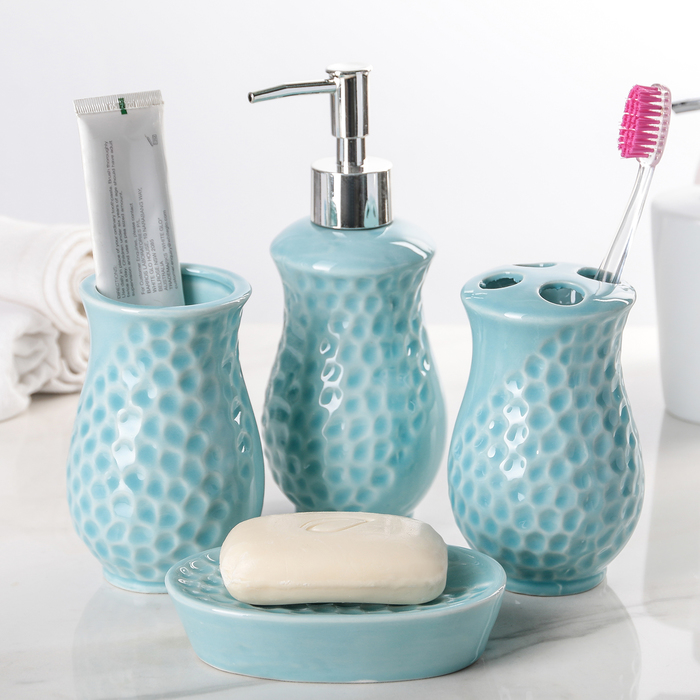 Набор аксессуаров для ванной комнаты, 4 предмета, цвет голубой