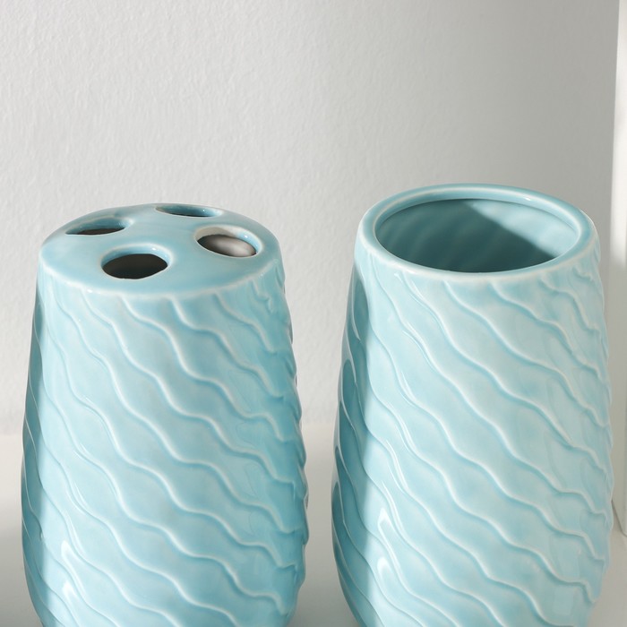 Набор аксессуаров для ванной комнаты, 4 предмета, цвет голубой